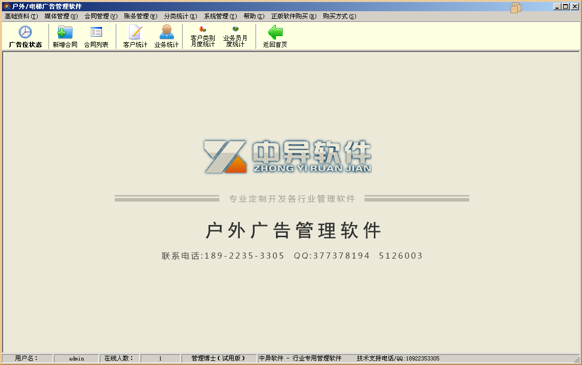 戶外廣告管理軟件,為企業(yè)量身定做,簡化公司管理,提高員工工作效率,免費下載試用 測試用戶名:admin 密碼:空