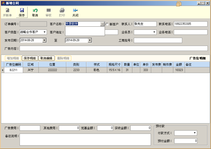 戶外廣告管理軟件,業(yè)務開單